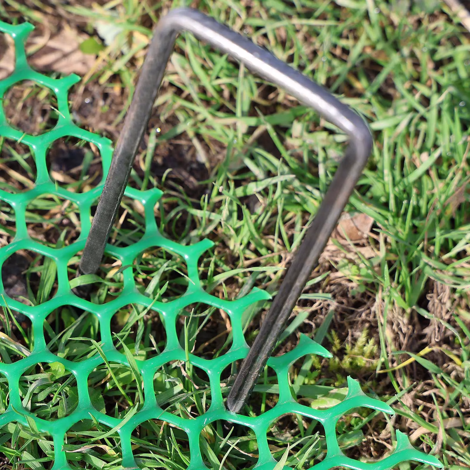Galvanised U pins are useful in many applications, not just securing grass protection mesh! Use them with weed suppression fabric, landscape fabric, artificial grass, ground sheets and fleece as well!