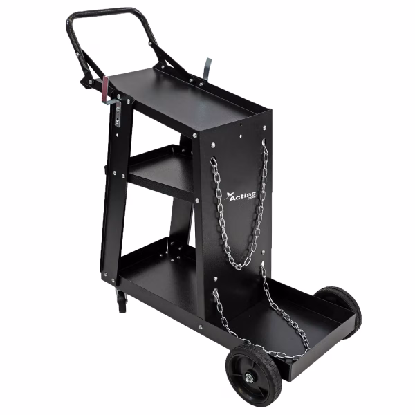 This welding trolley offers 3 sturdy levels of storage for welding gear, with additional storage for essential accessories. All steel construction with black finish and wheels for manoeuvrability.