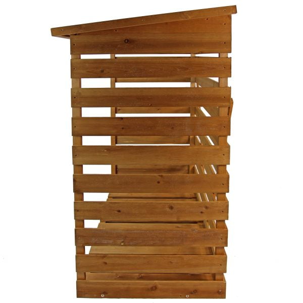 Our wooden log storage shed is perfect for keeping your logs aired and dry. With a raised floor to prevent damp, the wooden slats on 3 sides provide excellent air circulation. A Mineral Felt roof provides protection from the elements.